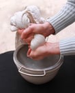 Pressez bien la pâte pour ne laisser dans l’étamine que la pulpe sèche...